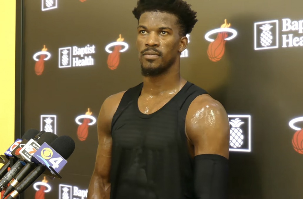 It may be a different team, but it’s the same Jimmy Butler. Going at it on the other side of the practice court in a king of the court session with Heat veteran Udonis Haslem and young two-way Javonte Smart.