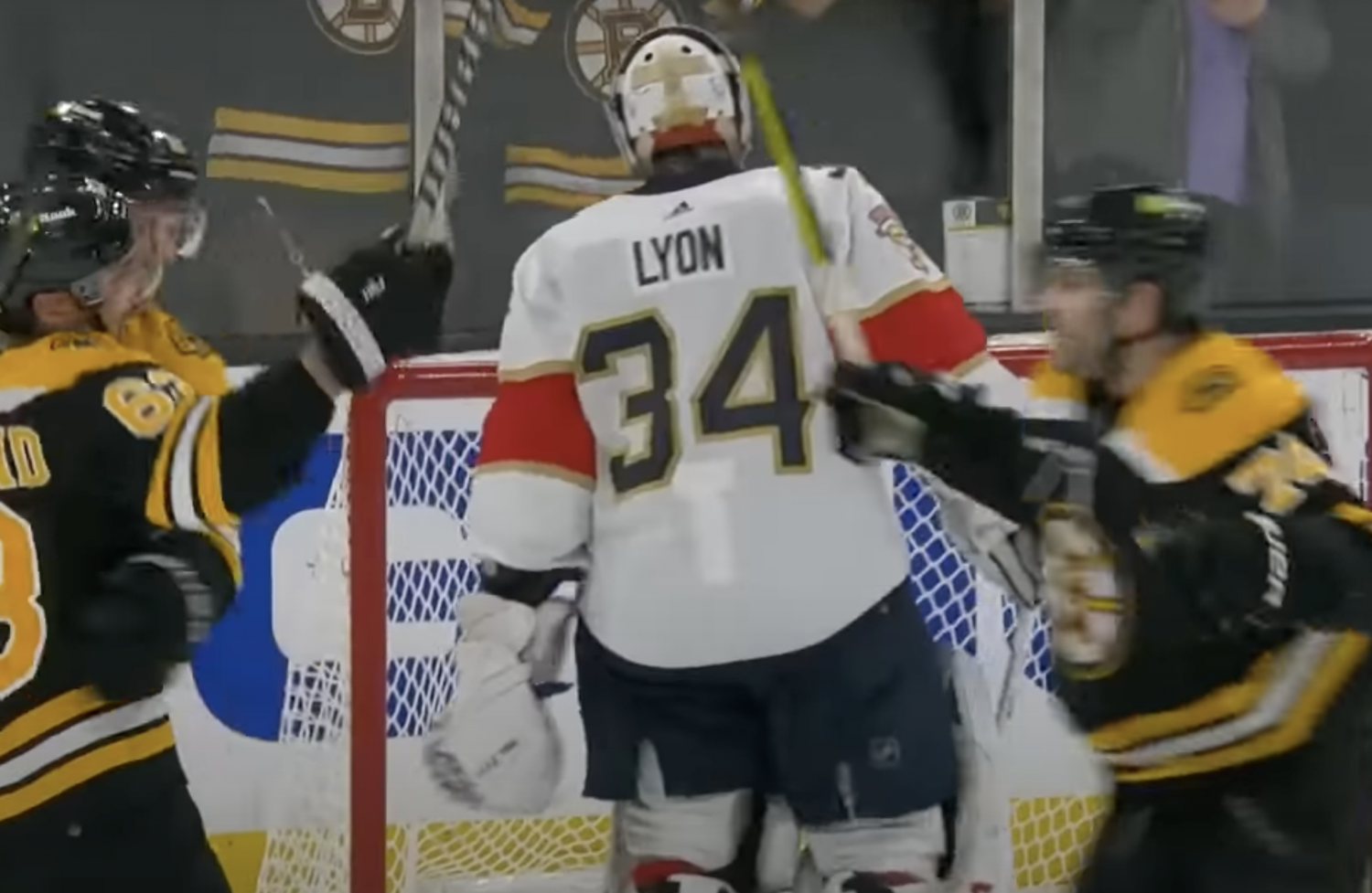 3:41 into the second, Brad Marchand sent a fairly weak wrist shot towards the Panthers’ goal. Lyon fluffed the routine glove save and the puck trickled in, giving the Bruins a 2-0 lead.