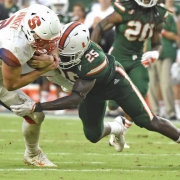 Manny Diaz’s defensive lines have always rotated often as this keeps fresh legs in crucial games. Even with the departure of Jess Simpson to the NFL, newly-hired DL coach Todd Stroud has been able to keep all three of Simpson’s commitments: Trevon Riggins (St. Petersburg, FL, Lakewood High), Samuel Anaele (Miami, FL, Carol City High), and Willie Moise (Hollywood, FL, Chaminade-Madonna). Coincidentally, they are also Miami’s longest tenured commitments and all three seem very solid in their commitments.