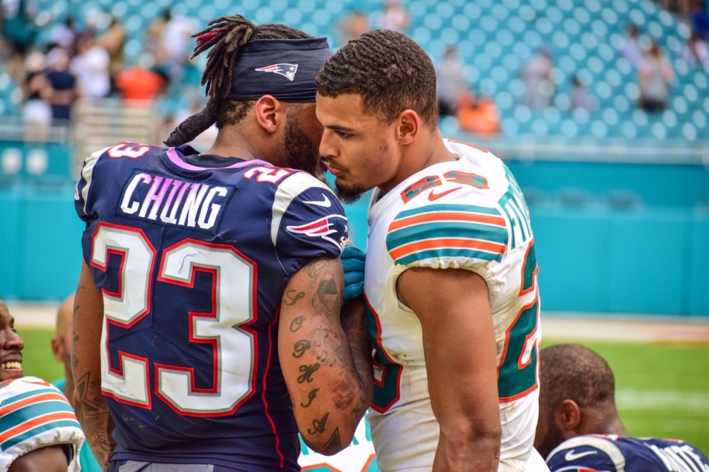 Great photo by our Tony Capobianco — that’s Minkah with Patrick Chung.