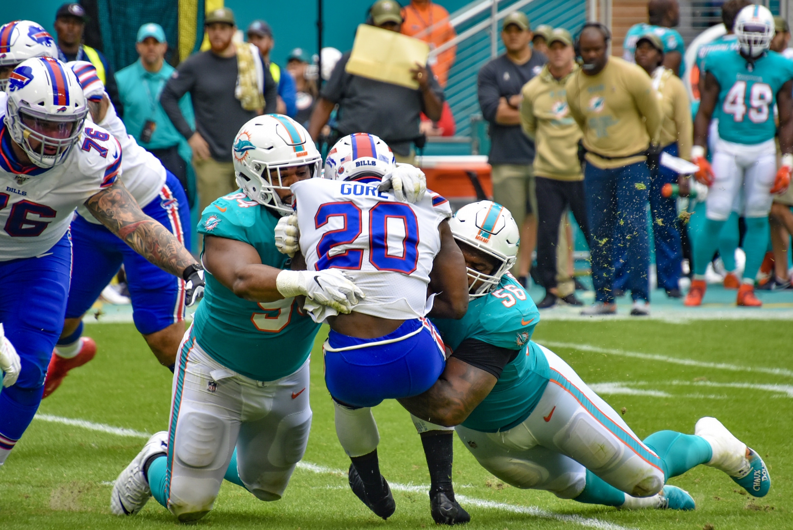 - Bills running back Frank Gore was held to 27 yards.