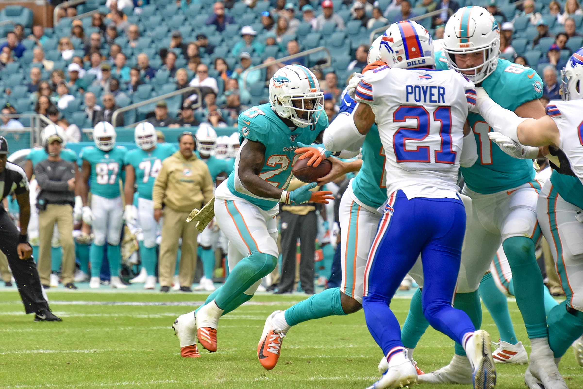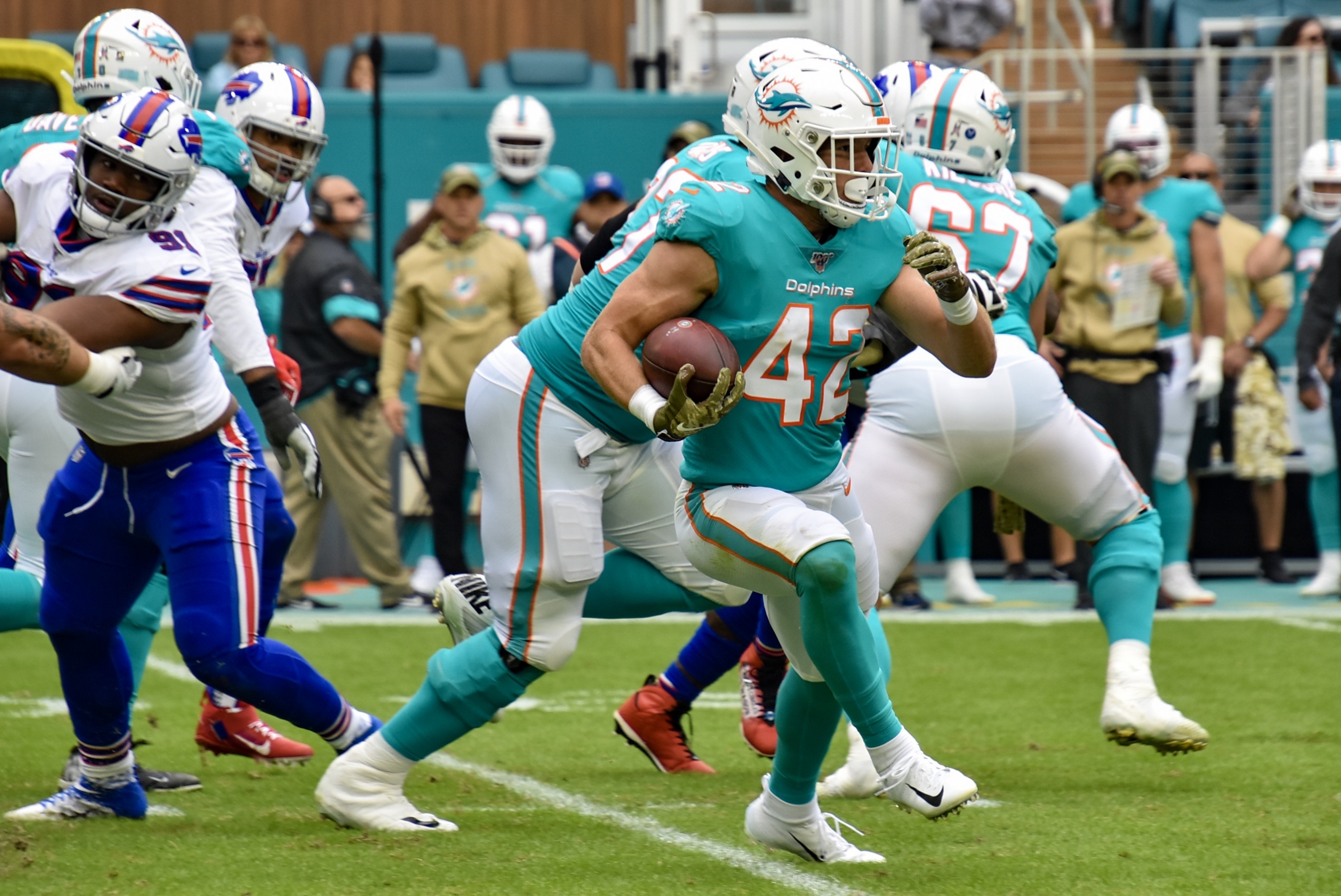 - Dolphins running back Kalan Ballage rushed for a touchdown.