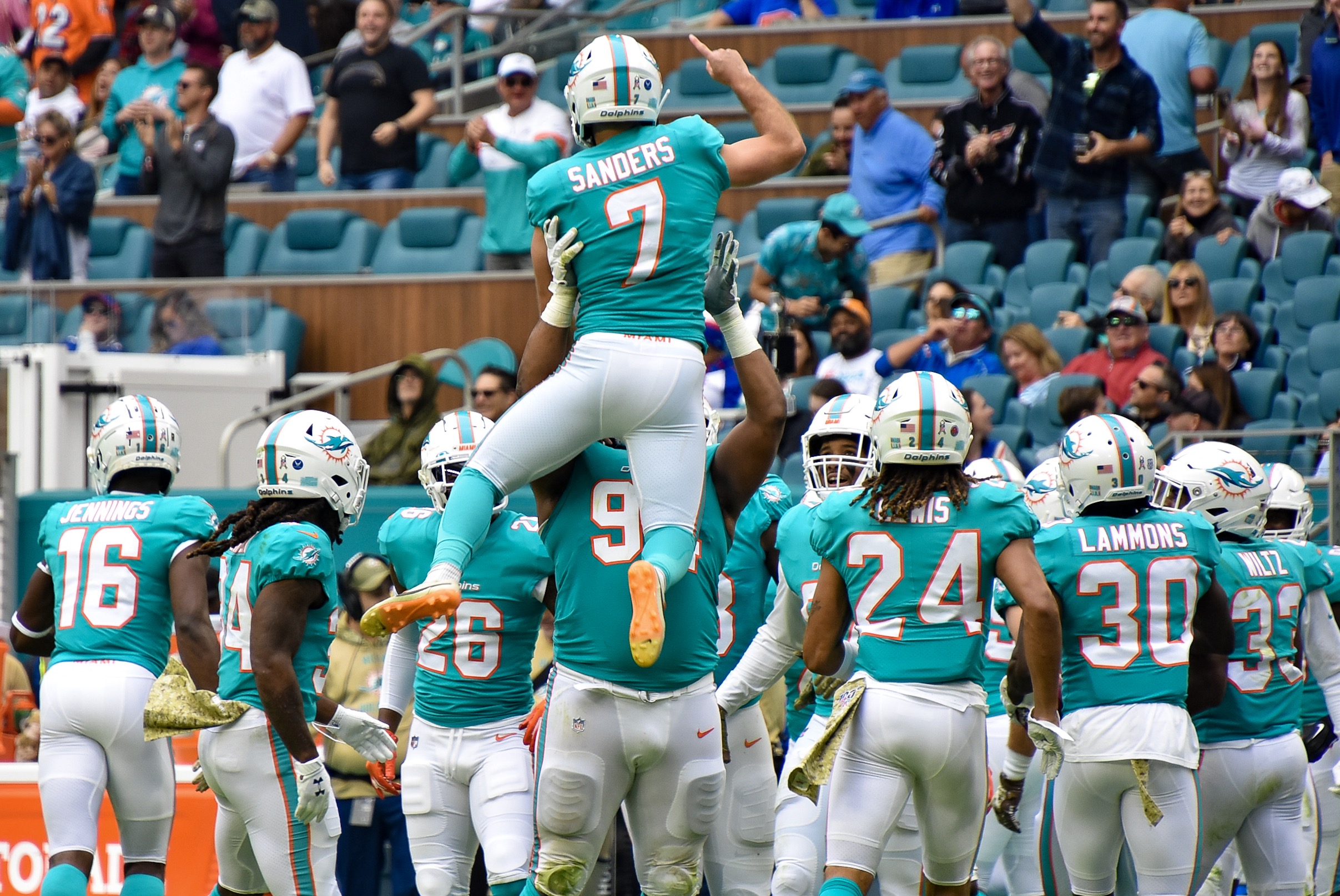 - Dolphins kicker Jason Sanders recovered his own onside kick.