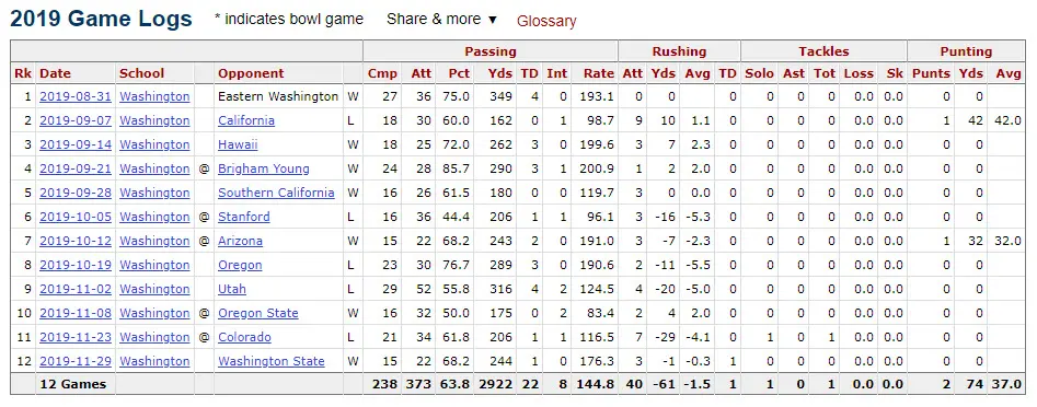 Jacob Eason vs Washington State