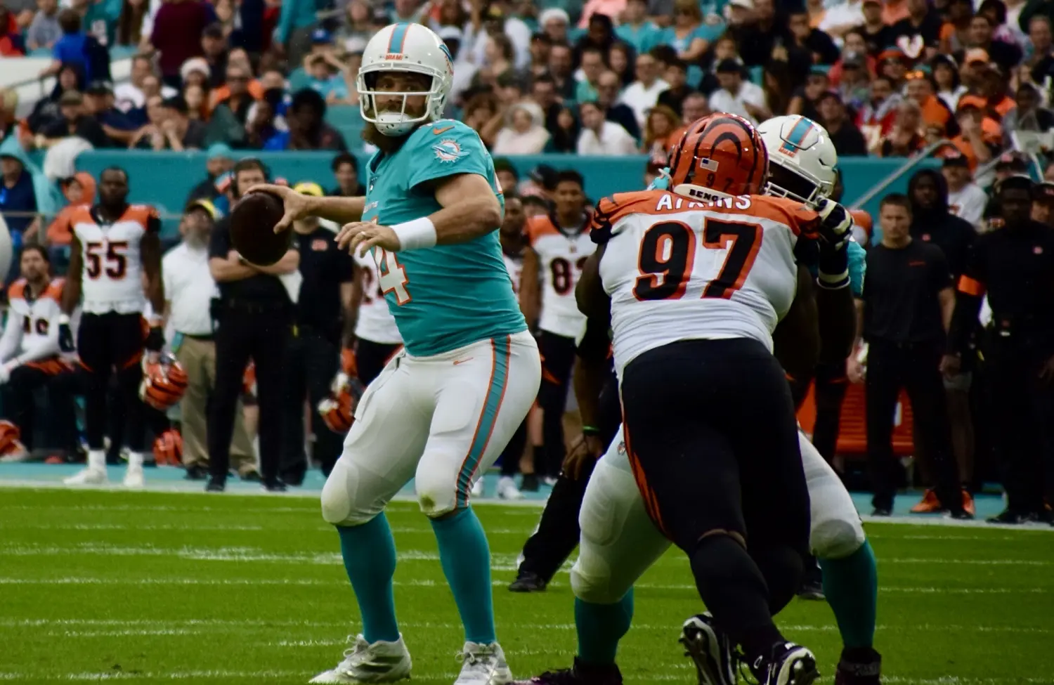 But as we learned over the first few days of camp, Josh Rosen wasn’t going to go down without a fight. If Miami’s 37-year old QB is out a significant amount of time, the team would then have to turn to 23-year old Josh Rosen or 22-year old Tua Tagovailoa. Both players have a lot to learn in Chan Gailey’s offense.
